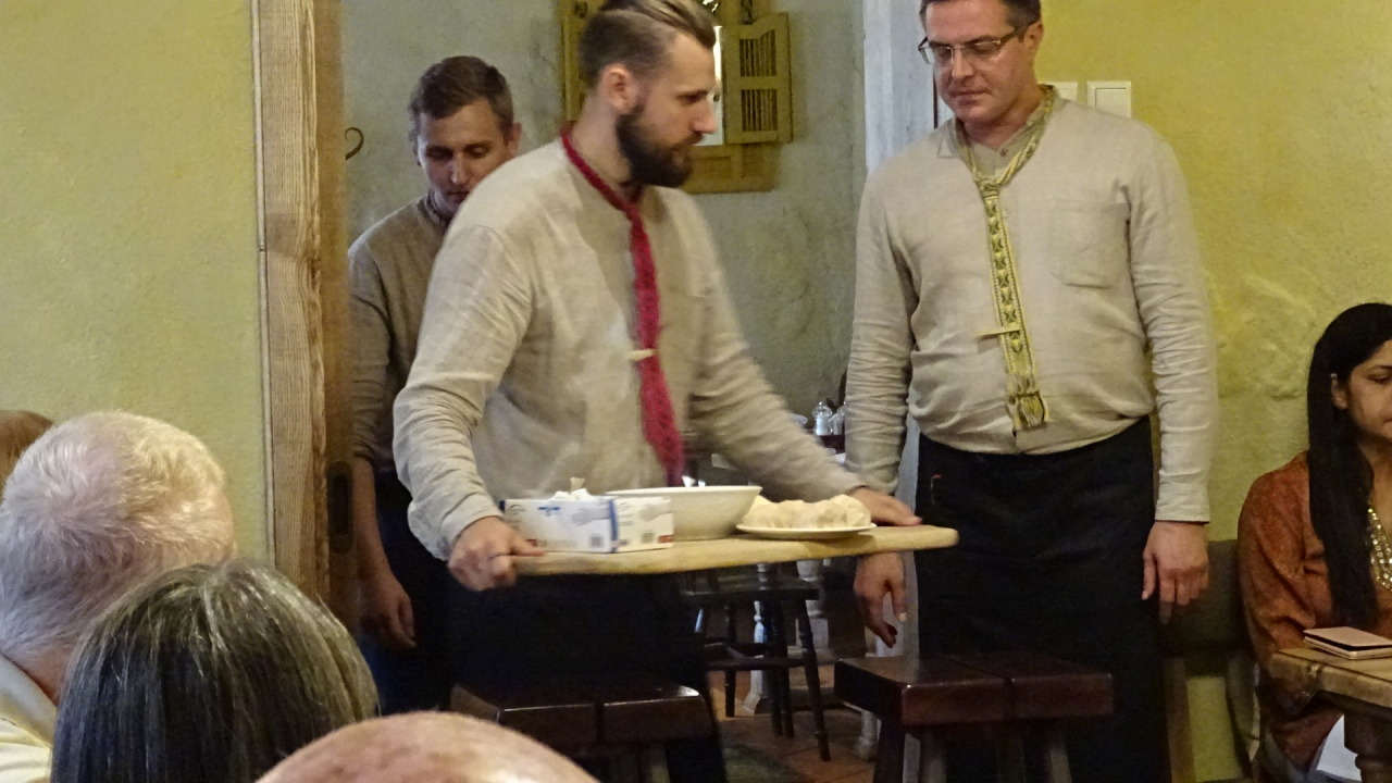 This evening, we went to a farmstead for dinner and were met by Anatolij who showed us how to drink vodka correctly and then provided us with a traditional meal and some musical entertainment as well as some more vodka - some of the Americans had a bit of trouble with the vodka.